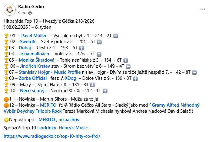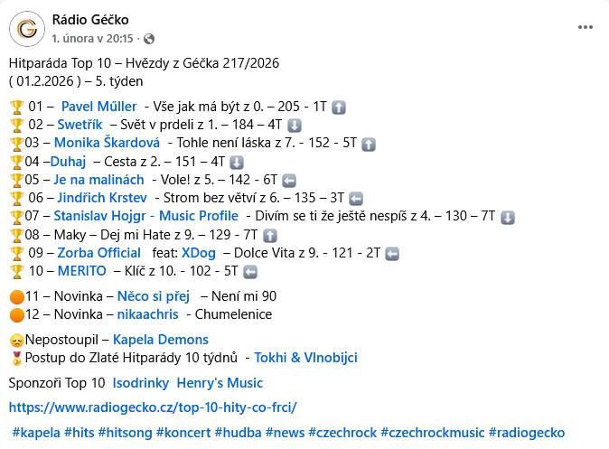 Hned při premiéře v 5.týdnu Hitparády TOP10 Rádia Géčko se Pavlův singl Vše jak má být vyšvihl na 1. místo !!